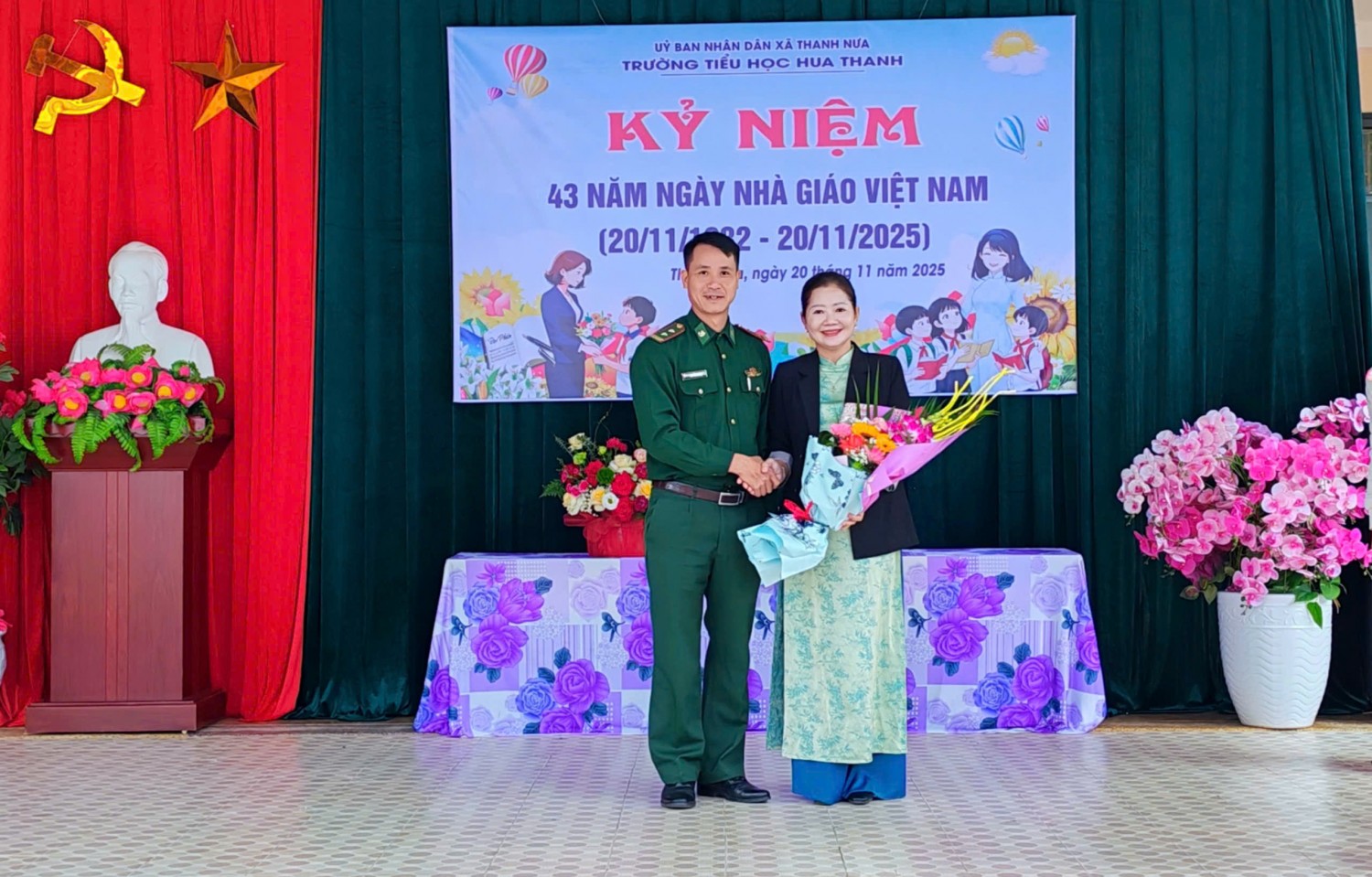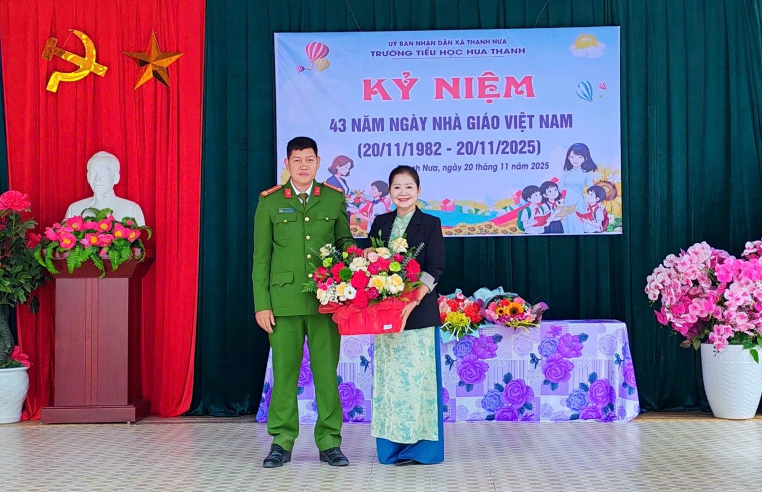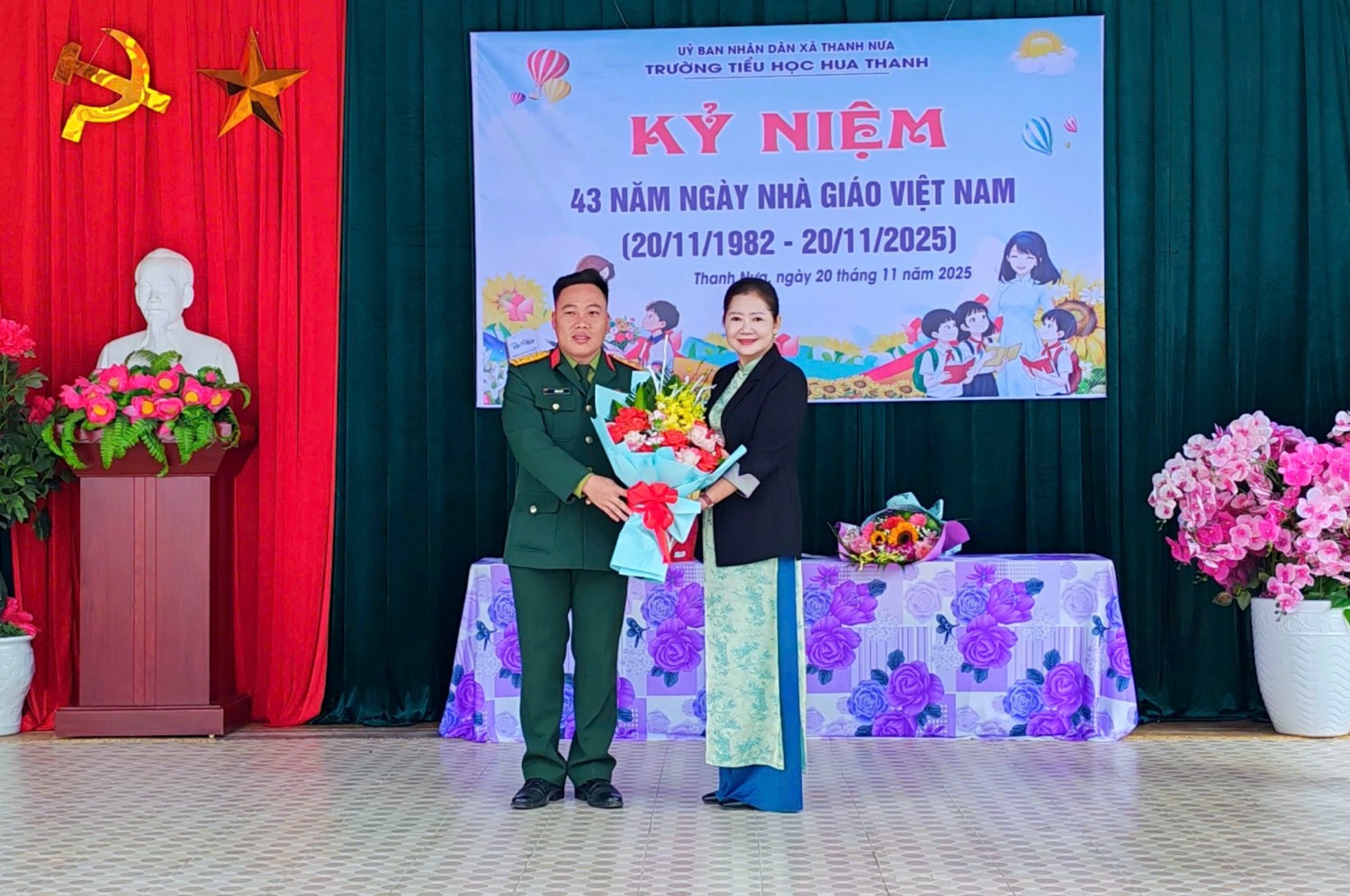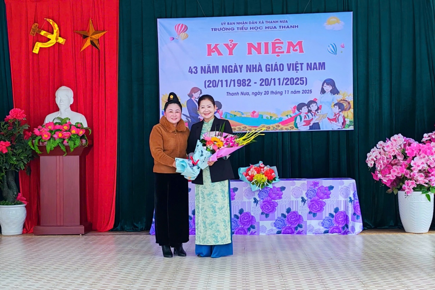 Trong buổi lễ, đại biểu UBND xã Thanh Nưa cùng các ban ngành địa phương đã lên tặng hoa chúc mừng, gửi lời tri ân sâu sắc tới tập thể cán bộ, giáo viên của nhà trường. Những bó hoa tươi thắm thể hiện sự quan tâm và ghi nhận của chính quyền đối với công sức của thầy cô.